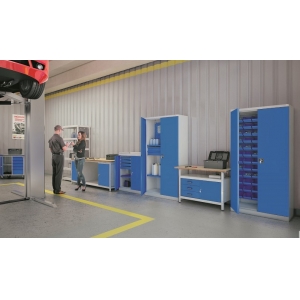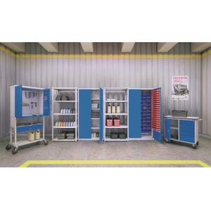 Tugeva ja jäiga keevisraamiga. mitte kokku polditud kapp kontorisse. töökodadesse. tööstusele. Kapp sisaldab 4 riiuliplaati. kokku 5 riiulivahet. Riiuliplaadid kõrguses vabalt seatavad vastavalt vajadusele. Lisa riiuliplaat tootekoodiga 997000130. Uks lukustatav. Kapp helehall. uksed sinised RAL5012. Valmistatud 0.8 mm terasplekist.